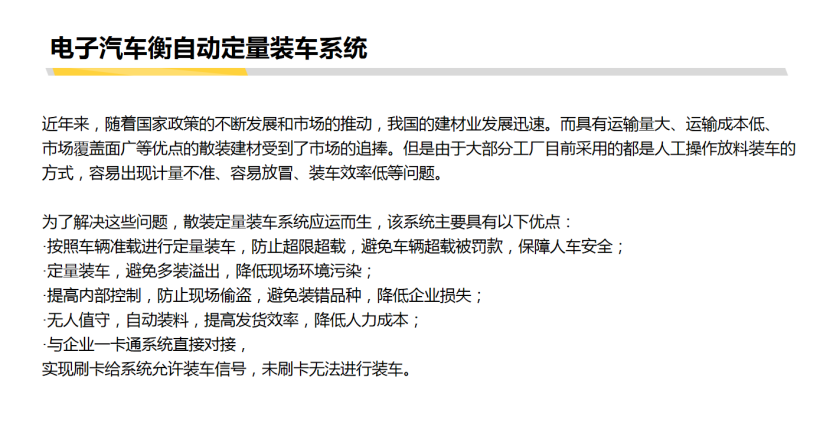 為了解決這些問題,散裝定量裝車系統(tǒng)應(yīng)運而生,該系統(tǒng)主要具有以下優(yōu)點: