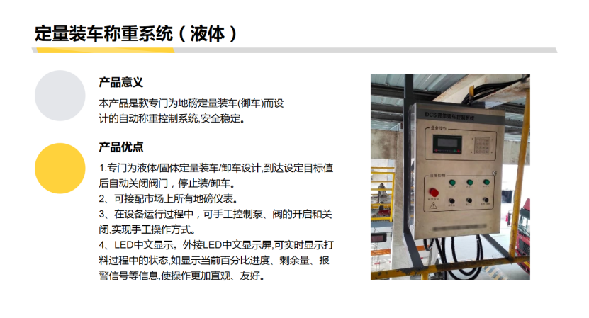 定量裝車,避免多裝溢出,降低現(xiàn)場環(huán)境污染;